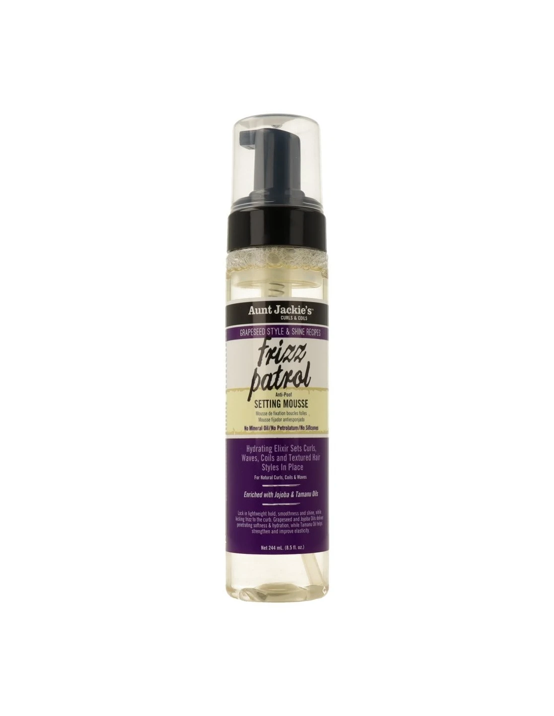 Esta mousse define ondas, caracóis e crespos, deixando-os suaves, brilhantes e bem definidos. Elaborado com óleo de Semente de Uva para um brilho deslumbrante e óleos de Tamanu e Jojoba para a retenção da hidratação e suavidade, o Frizz Patrol ajusta-se de maneira maravilhosa sem deixar resíduos. Ideal para todos os tipos de cabelos e texturas.