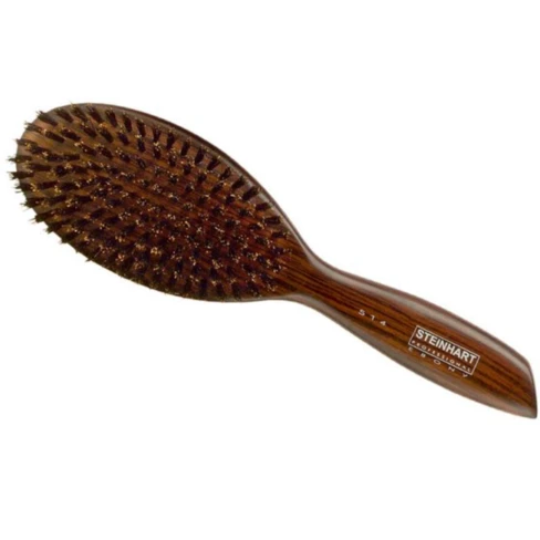 Descubra Steinhart Ebony 514 Escova de Cabelo Oval em Madeira para Cabelos Macios – fabricada com cerdas 100% de javali para condicionar, suavizar e melhorar naturalmente a textura do cabelo, reduzindo o frizz.