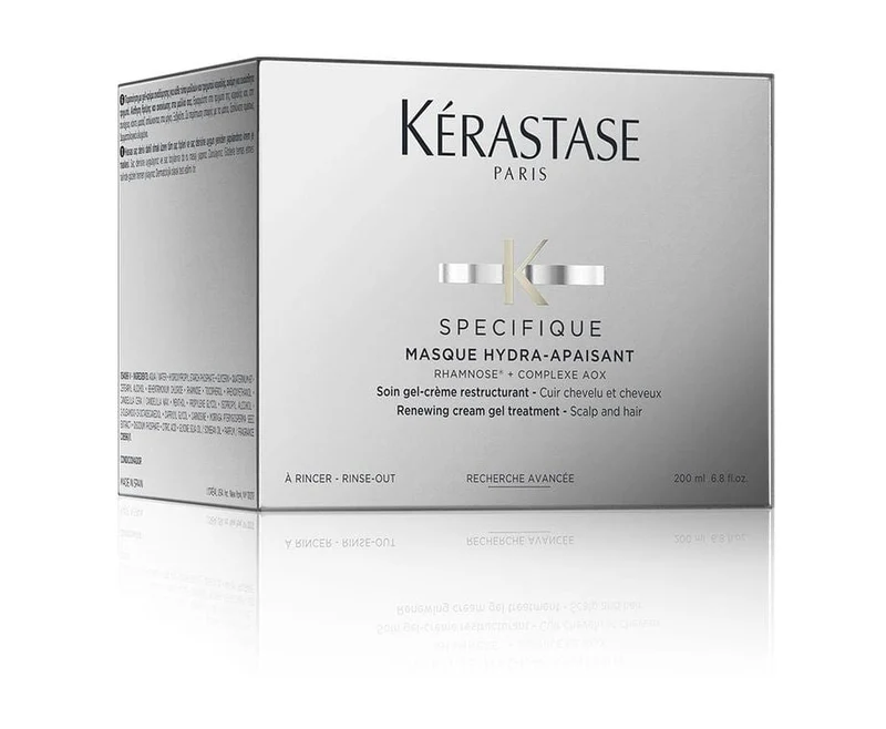 Kérastase Spécifique Hydra-Apaisant é uma máscara que hidrata e apazigua o couro cabeludo para melhorar a qualidade da pele e ajudar o couro cabeludo a combater a secura e a oleosidade. Os principais ingredientes desta máscara sem silicone ajudam a purificar o couro cabeludo, tratando de vários problemas como raízes oleosas, caspa, comichão e irritação no couro cabeludo, e inclusive a queda de cabelo. O cabelo fica nutrido como que renovado.