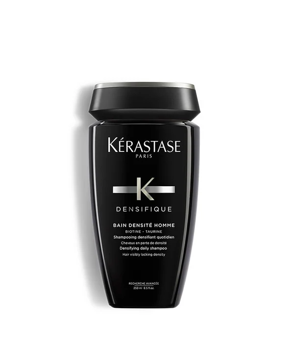Bain Densité da Kérastase é um shampoo diário para tratar o cabelo masculino com perda de densidade. Combinado com biotina e polímeros texturizantes, este produto tem uma ação densificadora instantânea na fibra capilar, conferindo frescura e espessura ao cabelo e couro cabeludo para um aspeto leve e saudável no homem. Um tratamento forte específico para cabelo curto, deixando-o com um aspeto mais espesso e preenchido.