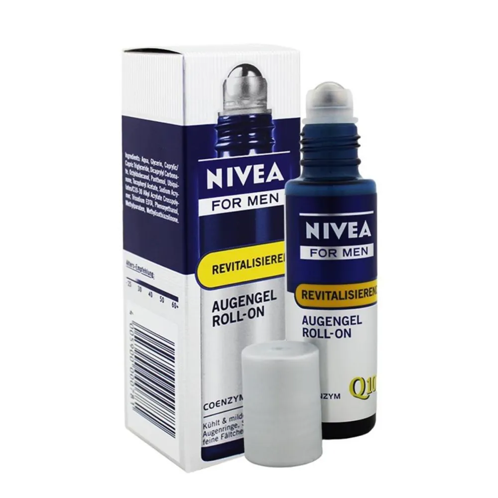 Cosmética Nívea. NIVEA MEN Contorno de Olhos Roll-On Revital Q10. Revitalizante anti-fadiga para a zona delicada do contorno dos olhos. Sente a sua mirada desesperada, sem bolsas e ojeras graças a este tratamento que é muito fácil de aplicar graças ao roll-on, que à vez refresca. Aplique de manhã e à noite.