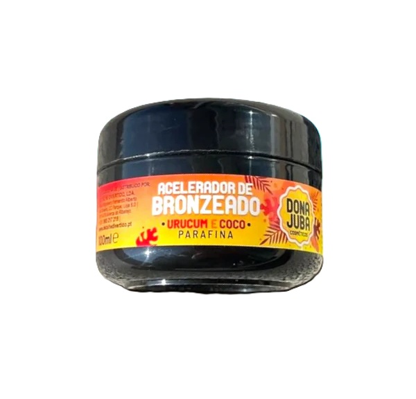 Descobre o segredo para um bronzeado dourado, uniforme e saudável com o Acelerador de Bronzeado Dona Juba. Enriquecido com urucum, óleo de coco e uma base suave de parafina, este óleo bronzeador potencializa o teu bronzeado com rapidez, deixando a pele nutrida, hidratada e com um aroma irresistivelmente tropical.
