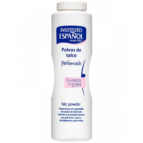 Pó de talco macio e perfumado do Instituto Espanhol. Projetado para reduzir o suor. Não seca a pele, podendo ser utilizada por toda a família.