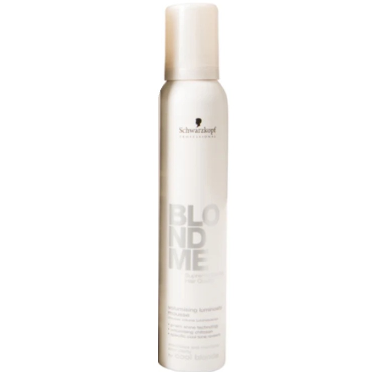 A Schwarzkopf Blondme Volumizing Luminosity Mousse for Cool Blonde 200ml oferece benefícios de volume, luminosidade e neutralização de tons amarelados para cabelos louros frios.